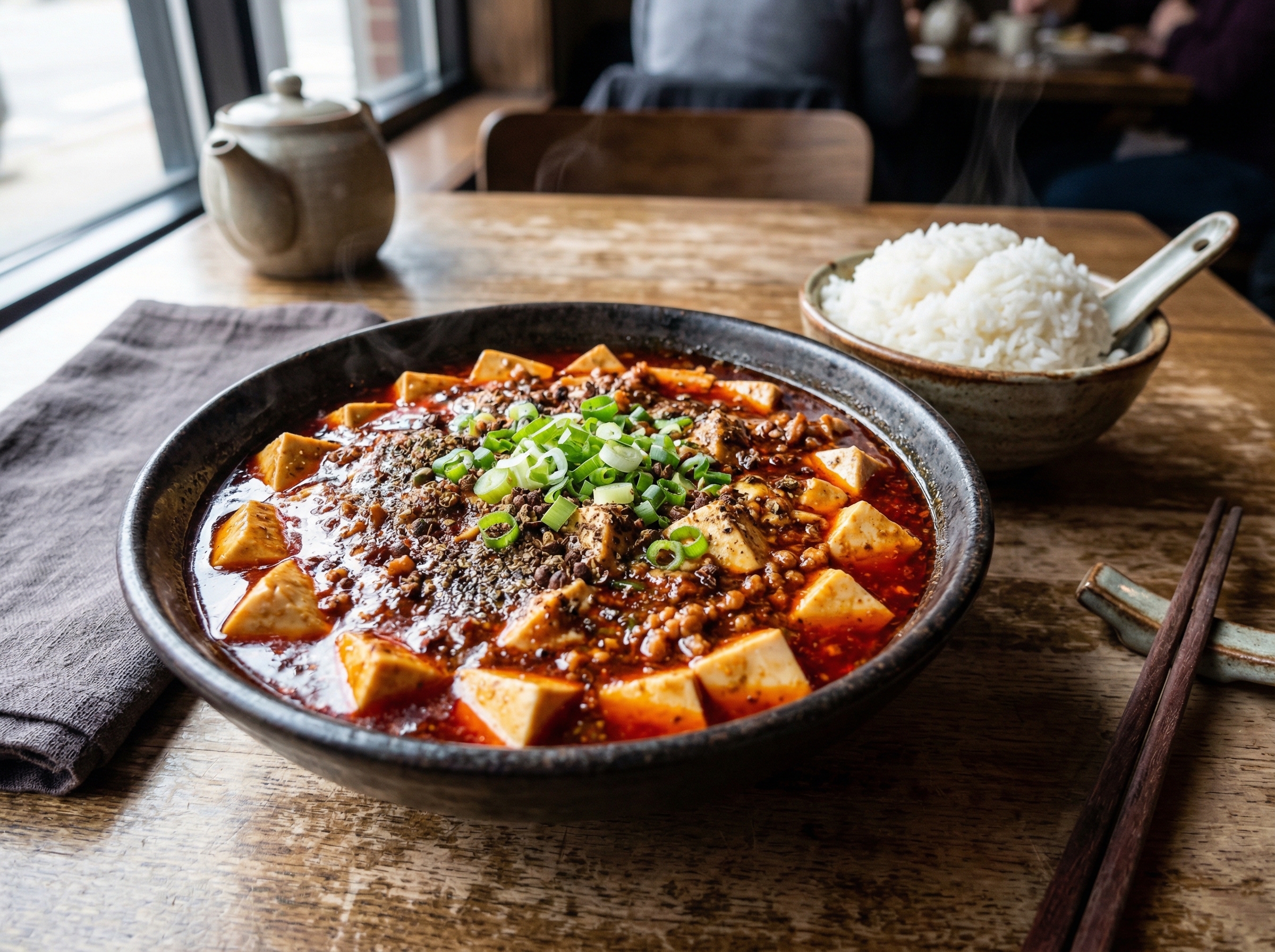 This comforting Chinese dish features soft tofu in a spicy, numbing Sichuan chili pork sauce.